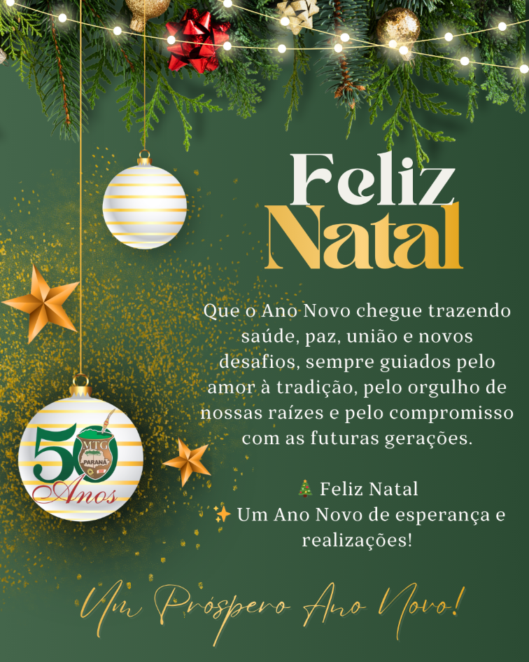 Que o Ano Novo chegue trazendo saúde, paz, união e novos desafios, sempre guiados pelo amor à tradição, pelo orgulho de nossas raízes e pelo compromisso com as futuras gerações.